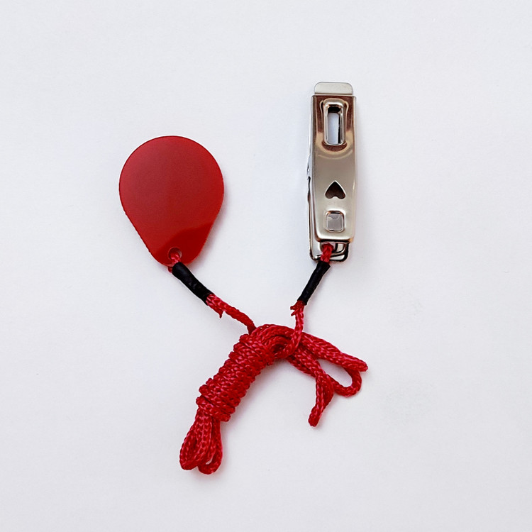 | اجزای اصلی | 1. کلید (پین/آهنربا) 2. بند ایمنی (متصل به کلید و کاربر) 3. سوئیچ قطع روی بدنه دستگاه . |
